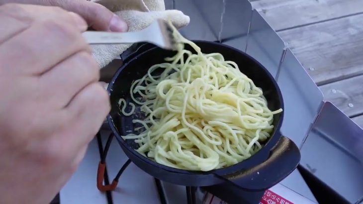 お気に入りに追加 「うどんのアヒージョ」と聞くと、変な組み合わせだと思うかもしれませんが、要は「うどんのペペロンチーノ」です(これも変でしょうか…)。 ニンニク香るオリーブオイルとうどんが絶妙にマッチします。 味付けはしらすと明太子の塩味だけでOK。簡単ですね。 アヒージョを作って、オリーブオイルが余った時に、パスタを入れる人も多いですが、うどんも合いますよ。 ダイソーのスキレットM(15cm)で […]