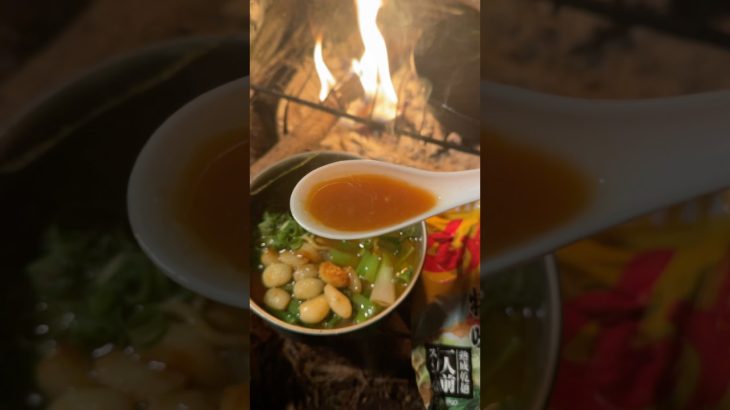 お気に入りに追加 焚火でのラーメン。 最高の一日です。 #キャンプ飯 #ソロキャンプ #ソロキャン #camp